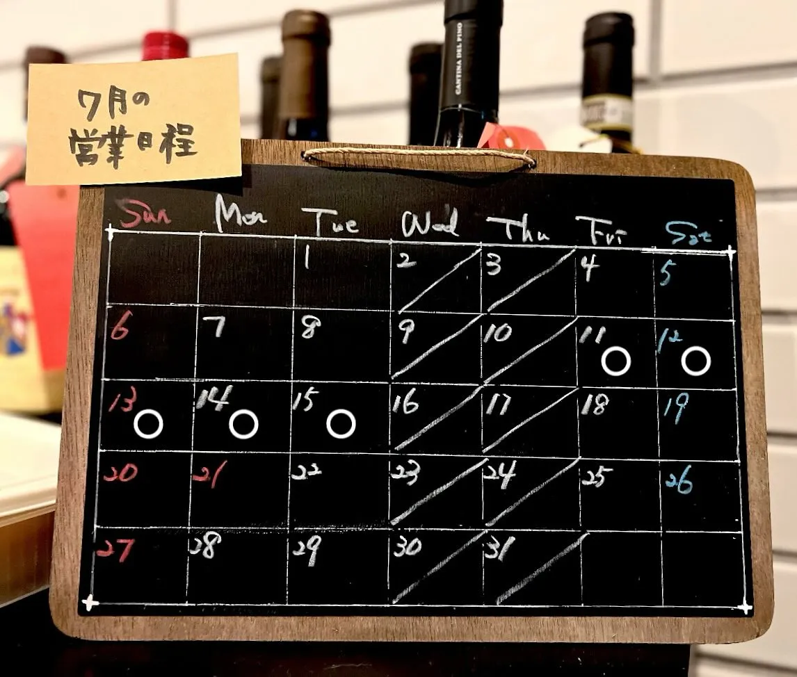 【7月の営業日程】🇮🇹 2025/07/14 【7月の営業日程】🇮🇹 ○ 7/11(金) 〜 15(火) 周年特別ディナーコース週間 この期間、ランチはお休みさせていただきます 7月もどうぞ宜しくお願いします