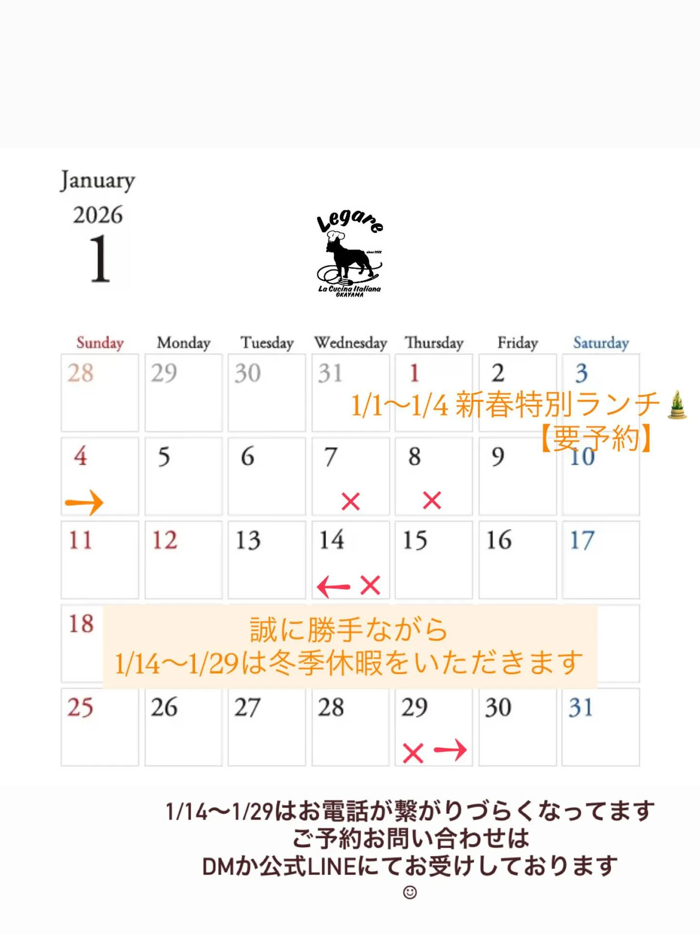 ✔︎1/14〜1/29冬季休暇をいただきます🎍